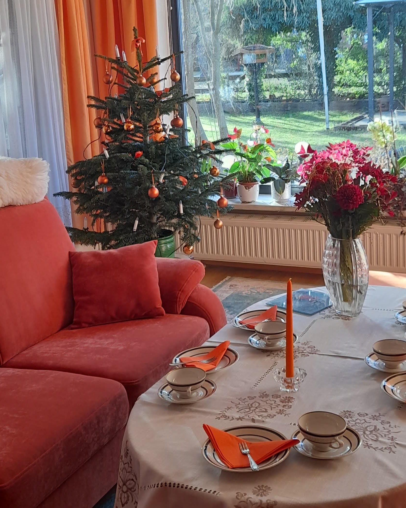 „Doch nicht für das gute Goldrandservice und die Kristallgläser. Nein, die müssen per Hand abgewaschen werden. Das mach ich am liebsten alleine, schicke dann die Familie zum Spaziergang. Ich stell mir Weihnachtsmusik an und genieße die Ruhe, während ich abwasche und dann den Tisch wieder zum Kaffee decke. “ Das Schlimmste sei das Planen und Überlegen, was alles eingekauft und vorbereitet werden müsse. So ohne Auto sei das eine ziemliche Schlepperei mit ihrem Hackenporsche. „Ich muss doch alles noch die Treppen in die zweite Etage schlepppen. Und dann die Getränke! Wein, Sekt, Bier … Na, du weißt ja, was alles dazugehört. Zum Glück hab ich meinen Balkon, wo vieles deponiert werden kann. Im November beginne ich schon mit den Einkäufen.“ Sie seufzte leise und ihr Gesicht sah nicht mehr so fröhlich aus.
