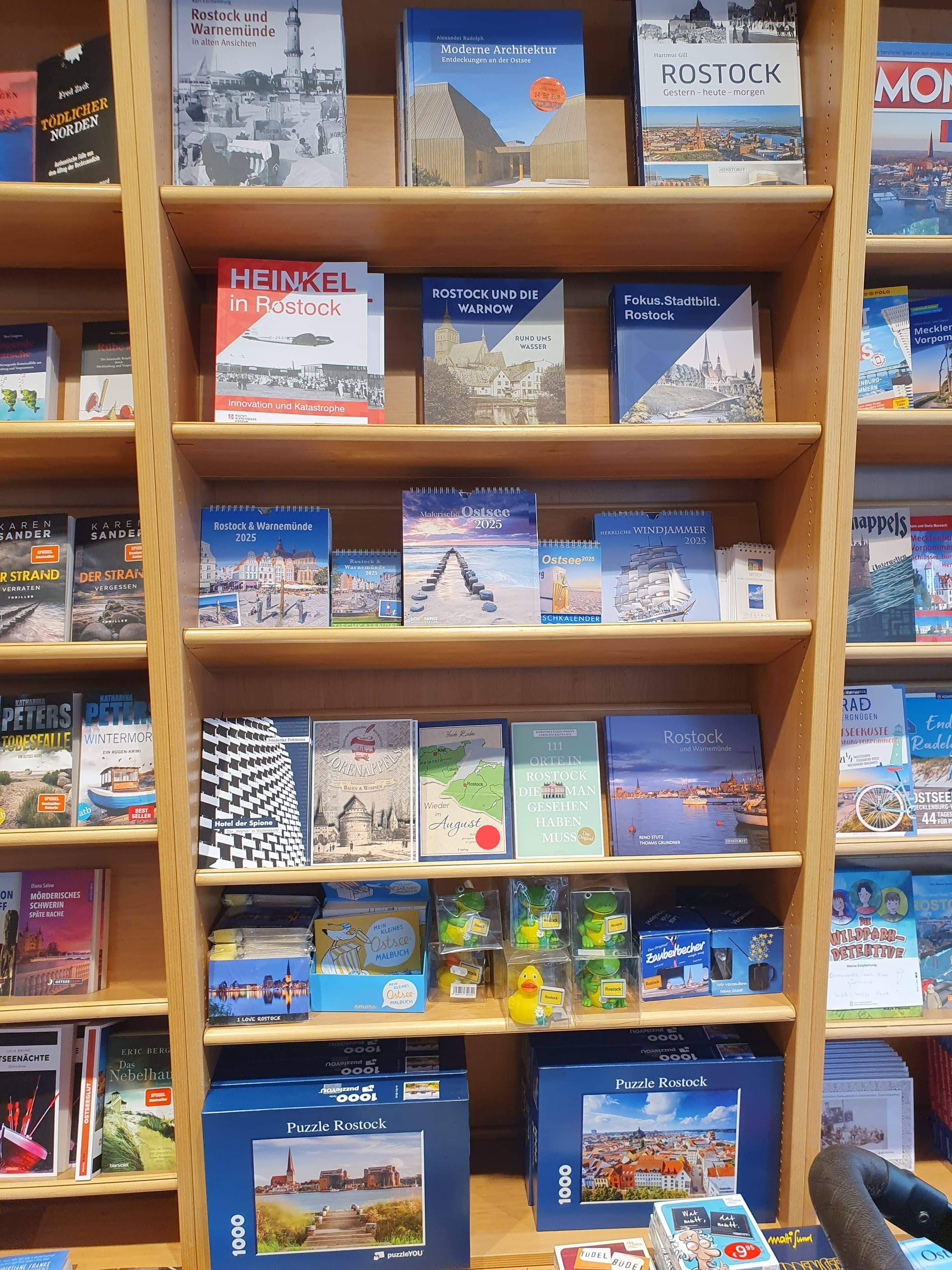 Beim Schreiben dieses Textes bin ich verwundert, wie oft ich mich besonders an diese Art von Literatur erinnere. Gemeinsam ist ihnen die Auseinandersetzung mit Krieg und Nachkriegszeit, die mir als Kind und Jugendliche half, eine Art Kompass zu finden, einen festen Standpunkt zu entwickeln, der mich im Wesentlichen noch heute begleitet. Wen wundert es, dass ich später Germanistik, Geschichte und Philosophie studierte, Lehrerin wurde und mir als Seniorin den Traum vom Schreiben erfüllte. (siehe roter Punkt im Foto, das einen Regalausschnitt bei Thalia zeigt, in dem ein Roman von mir steht.)